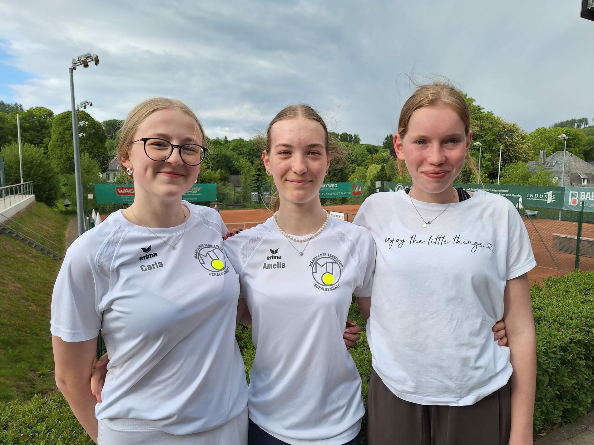 Es läuft einmal mehr prächtig in dieser Saison für unsere U18-Juniorinnen. Nach dem 3:0-Auftaktsieg beim TSV Fichte Hagen gewannen unsere Talente nun auch ihr erstes Heimspiel. Gegen den TC Lössel-Roden gelang ein verdienter 2:1-Erfolg. Amelie Dahlhaus, Carla Brand und Charlotte Friedrichs jedenfalls sind in bestechender Form. Und der MTC ist mächtig stolz! Das Team geht als Tabellenführer in eine lange Pause. Erst im September steht das Spitzenspiel beim Lüdenscheider TV von 1861 auf dem Programm. Wir drücken alle Daumen!
